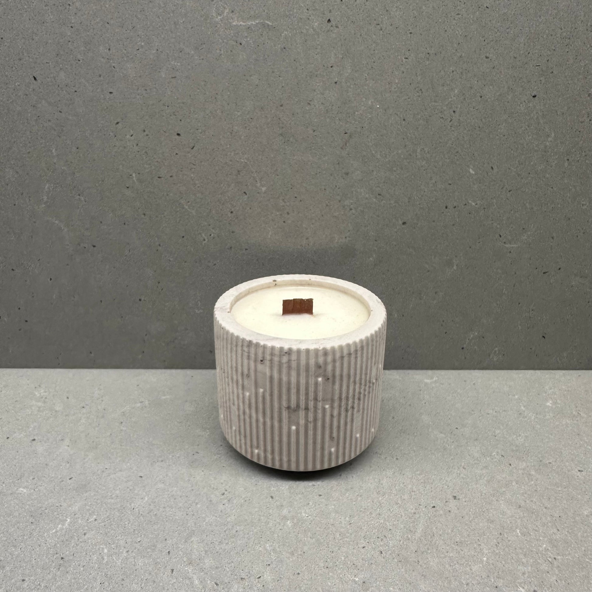 Žvakės indelis pagamintas iš Jesmonite medžiagos ir nugruntuotas akriliniu gruntu, kuris apsaugo žvakės indelį nuo vandens bei vaško poveikio. Išdegus žvakei indelį galite naudoti ir toliau arba užsisakyti žvakės papildymą pasirinkto kvapo.